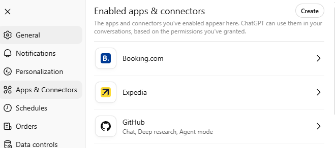 Supply pipes are finally reachable from the assistant. Being able to call Expedia and Booking from within ChatGPT is a meaningful step toward real-time pricing/availability without forcing users to context-switch. This is the connective tissue I expected as LLMs move from informational to agent.