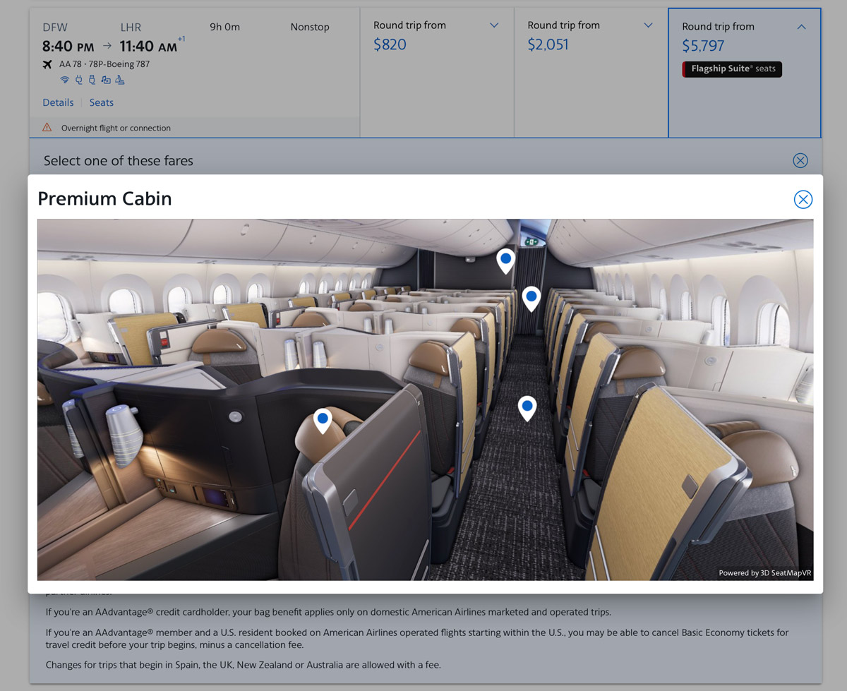 American recently began testing an interactive 3D seat map for the new Boeing