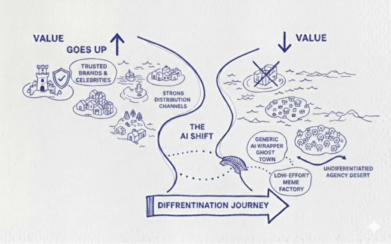 In an AI-generated world, the most valuable things will be the hardest to automate or fake. Differentiation will come from authenticity, curation, real-world presence, and above all, trust and humanity.
