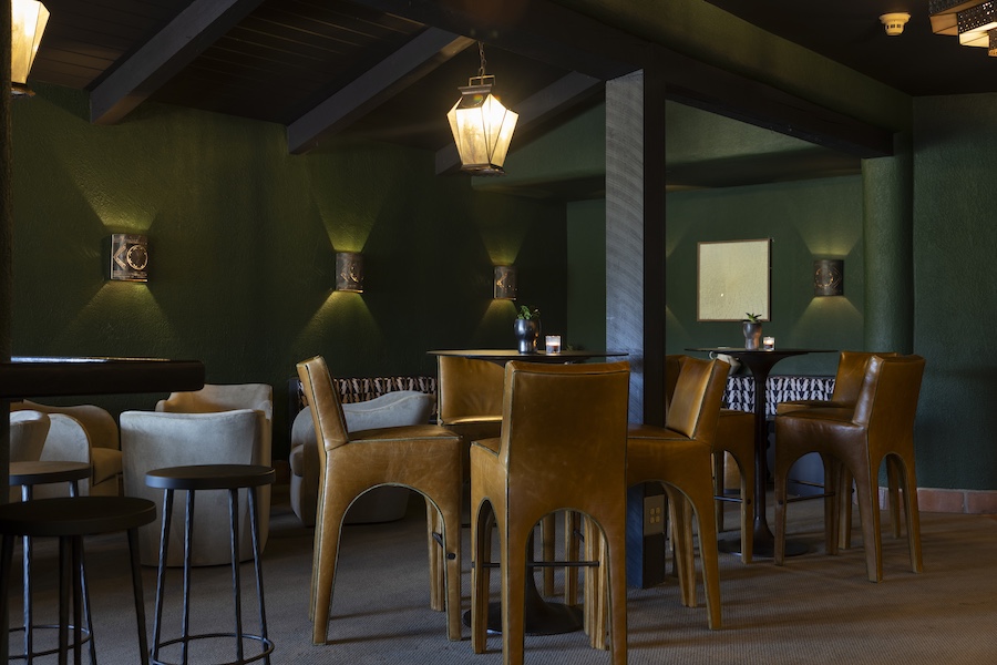 Anchoring the F&B program, Lady Duff’s Lounge brings a sultry, cinematic energy to the property. Named for Lady Duff Twysden, the stylish muse behind Brett Ashley in Hemingway’s The Sun Also Rises, the venue channels the creative spirit of Santa Fe’s past. Here, graphic prints showcase a green and terracotta palette, while carefully preserved tin lanterns add a warm, nostalgic glow.