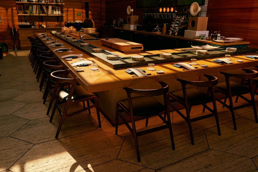 Designed in collaboration with Studio Tre, the 14-seat omakase bar is tucked inside the hotel’s skylit garden room, creating an intimate retreat that blurs raw and refined.