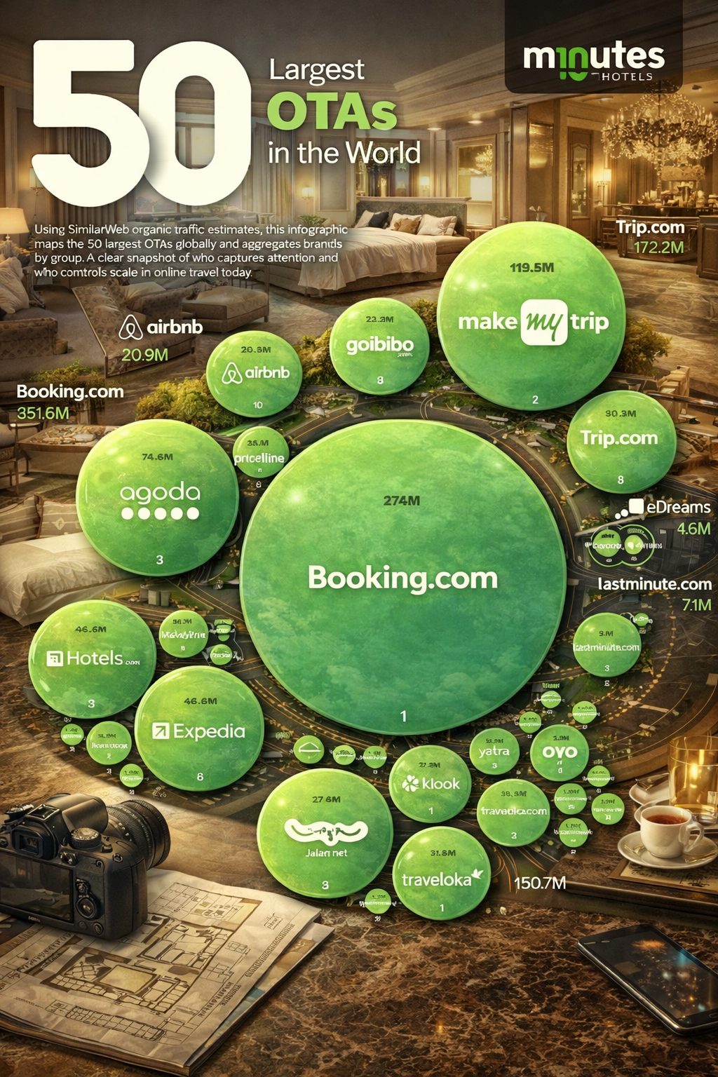 A remix of the 50 Top OTAs of the world chart in Van Gogh painting style.