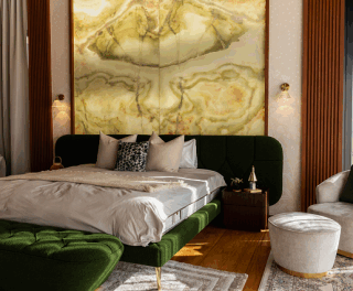 🏠 Opera Contemporary, a luxury furniture brand, furnished the sleeping area of Hilltop House, a private villa in Metro Manila, Philippines, curated by Moda Interni and Casa Licup. The master bedroom features a Dorothy bed with a green bouclé fabric headboard, 350 cm wide, and accommodates a 200x200 cm mattress. Additional pieces include the Fritz bench, Sophie armchair, and a Ø120-cm New Brian coffee table with Arabescato Vagli marble. Opera Contemporary highlighted bespoke Italian craftsmanship.